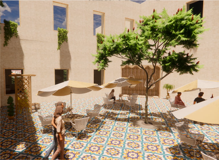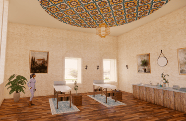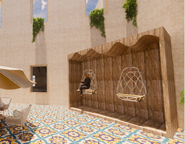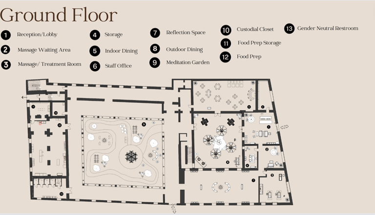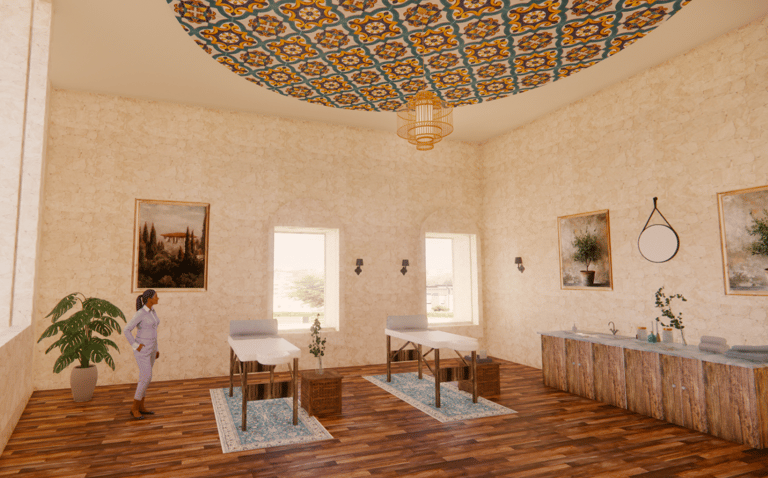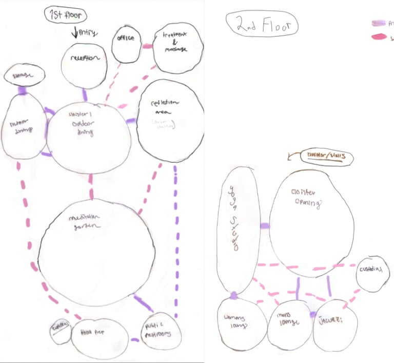 This project was completed while I was studying abroad in Florence, Italy and is located in an abandoned building in the city. I chose to repurpose the old site into a day spa in the heart of Florence. Spa Scalpore will serve as an escape from the stresses of everyday life that are sure to be encountered in the bustling city of Florence. With a focus on sensory design, Spa Scalpore appeals to the senses of the user, greeting them with a tranquil feeling that can be perceived through the five senses. The spa’s design prioritizes color, lighting, material, texture, and biophilia to create a sanctuary for the senses in the midst of an urban environment.