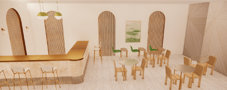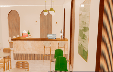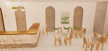 This project was done my sophomore year. We worked as a team to design a community center that combined the elements of music, food and history. We used an existing building in the Baton Rouge area and transformed it into a 2-floor community center. My task was to design the art gallery and the café. This was one of my first times experimenting with designing custom pieces and using Revit and Enscape.